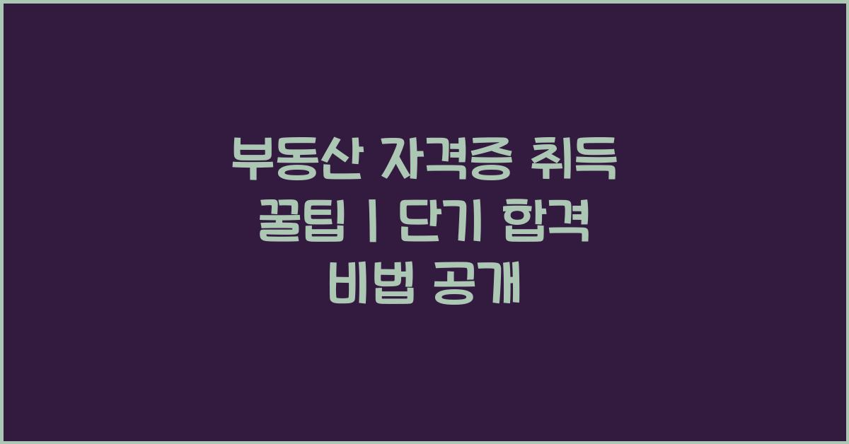 부동산 자격증을 단기간에 취득하기 위한 꿀팁과 합격 전략을 공유합니다. 체계적인 공부 계획과 유용한 학습 자료를 활용해 빠르게 합격할 수 있는 비법을 공개합니다.